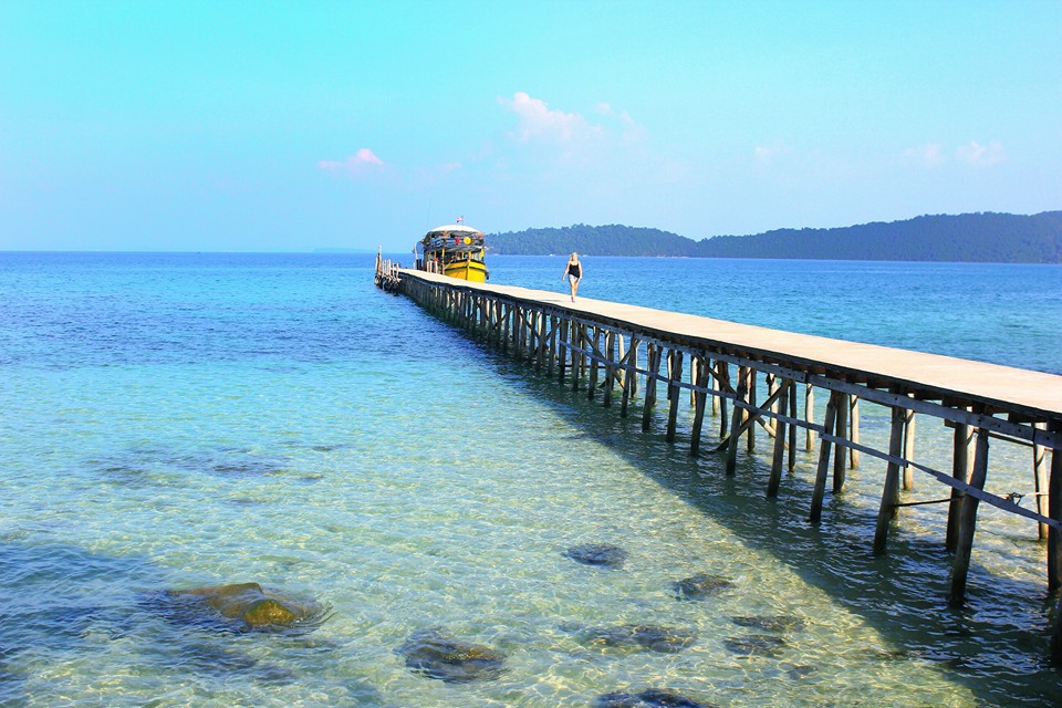 Bắt tia nắng cuối cùng tại cảng Independence: cảng Independence có mũi đất nhô ra mặt biển nhiều hơn so với các bãi biển khác vì thế mà ngắm hoàng hôn nơi đây được cho là đẹp và lãng mạn nhất khi du lịch Sihanoukville Campuchia. Hơn nữa trên đường đến cảng bạn còn có thể nhìn thấy cây cầu nối với đảo rắn.